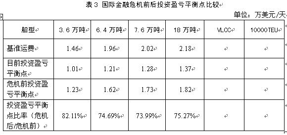 從另外一個(gè)角度來看,國際金融危機(jī)爆發(fā)后訂造的同型船盈虧平衡點(diǎn)遠(yuǎn)遠(yuǎn)低于危機(jī)前訂造的船舶。以靈便型散貨船、大靈便型散貨船、巴拿馬型散貨船和MR型成品油船為例,國際金融危機(jī)爆發(fā)后訂造的船舶盈虧平衡點(diǎn)普遍降至危機(jī)前訂造的80%左右。