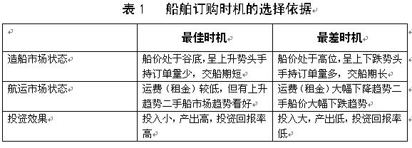 從影響船東選擇船舶訂購時(shí)機(jī)的主要因素看,除與公司自身發(fā)展戰(zhàn)略、資金實(shí)力和籌集能力等內(nèi)部因素有關(guān)外,還與當(dāng)時(shí)造船市場(chǎng)和航運(yùn)市場(chǎng)的狀態(tài)和發(fā)展趨勢(shì),特別是船價(jià)和運(yùn)價(jià)狀況密切相關(guān)。我們認(rèn)為,航運(yùn)企業(yè)最理想投資訂造新船的時(shí)機(jī)是:船價(jià)已進(jìn)入谷底并即將上漲,航運(yùn)市場(chǎng)低迷但中長(zhǎng)期趨勢(shì)看好。