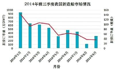 據(jù)克拉克松統(tǒng)計(jì),2014年前三季度,我國(guó)造船新接訂單691艘,4399萬(wàn)載重噸,占到全球新接訂單量(以載重噸計(jì))的48.3%,較2013年全年我國(guó)占全球新接訂單占比47.7%略有提高。