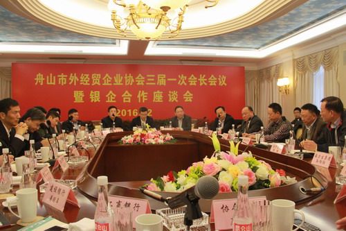 2016年12月20日下午,舟山市對(duì)外經(jīng)濟(jì)貿(mào)易企業(yè)協(xié)會(huì)在朱家尖和潤(rùn)集團(tuán)總部召開(kāi)三屆一次會(huì)長(zhǎng)會(huì)議暨銀企合作座談會(huì),市政府黃國(guó)華副市長(zhǎng)出席會(huì)議并作講話。出席本次會(huì)議的還有市商務(wù)局干松章局長(zhǎng)、盛惠敏副局長(zhǎng)、舟山出入境檢驗(yàn)檢疫局、舟山海關(guān)、舟山邊檢、舟山農(nóng)業(yè)銀行、中國(guó)銀行、交通銀行、浦發(fā)銀行、建設(shè)銀行、工商銀行和協(xié)會(huì)會(huì)長(zhǎng)、副會(huì)長(zhǎng)單位的領(lǐng)導(dǎo)。會(huì)上,協(xié)會(huì)會(huì)長(zhǎng)和潤(rùn)集團(tuán)董事局主席虞松波致詞,協(xié)會(huì)秘書(shū)長(zhǎng)莊和合主持會(huì)議并作工作匯報(bào),參會(huì)同志進(jìn)行交流發(fā)言,大家回顧2016年,展望2017年,共同商討下一步發(fā)展大計(jì),積極尋找金融支持企業(yè)的合作點(diǎn);雙方認(rèn)為,在當(dāng)前復(fù)雜多變的國(guó)際環(huán)境中,銀企雙方要同舟共濟(jì),抱團(tuán)取暖,克服困難,積極進(jìn)取,為舟山外貿(mào)經(jīng)濟(jì)發(fā)展再作貢獻(xiàn)。會(huì)議以務(wù)實(shí)為出發(fā)點(diǎn),順利完成了各項(xiàng)議程,收到了預(yù)期效果。 (協(xié)會(huì)秘書(shū)處)